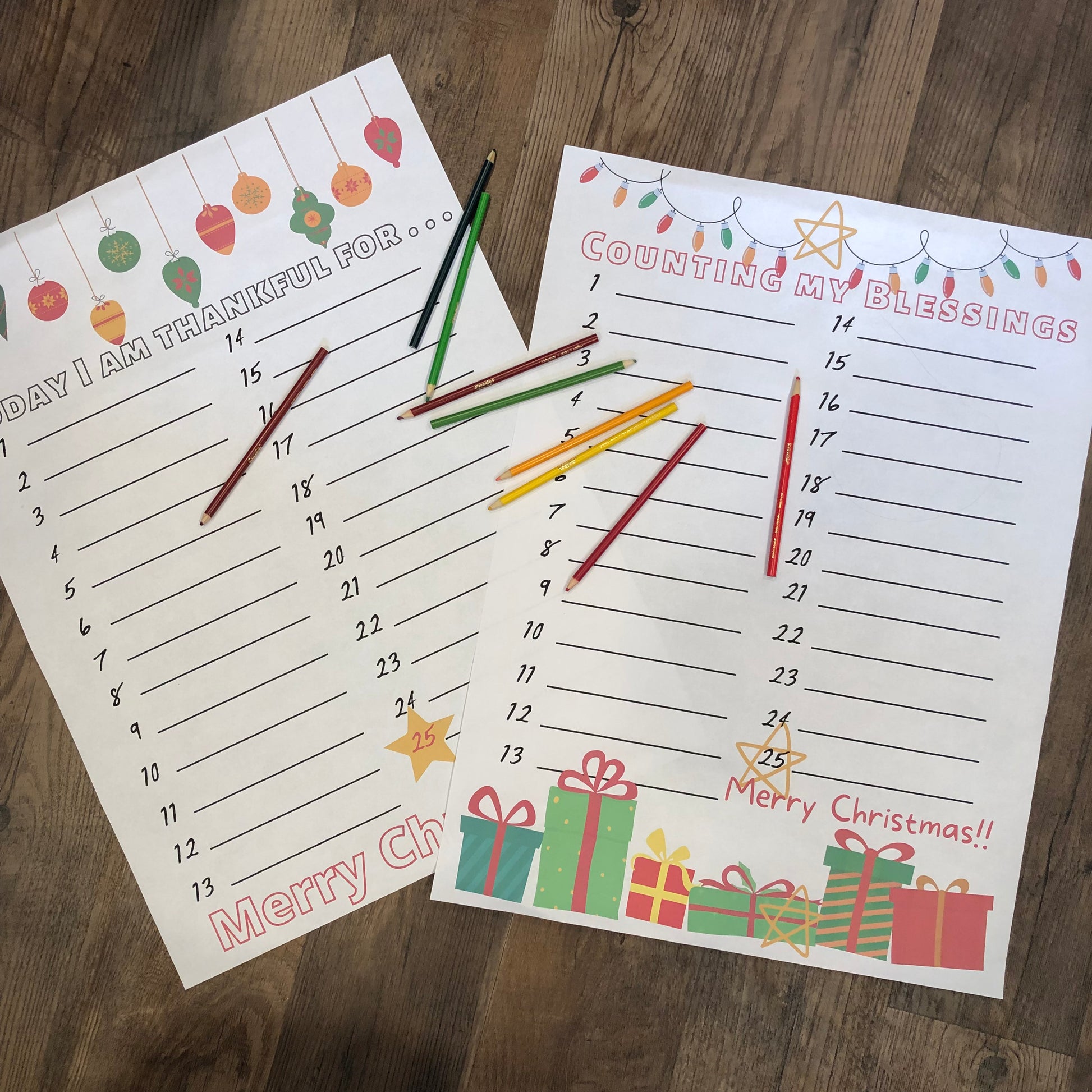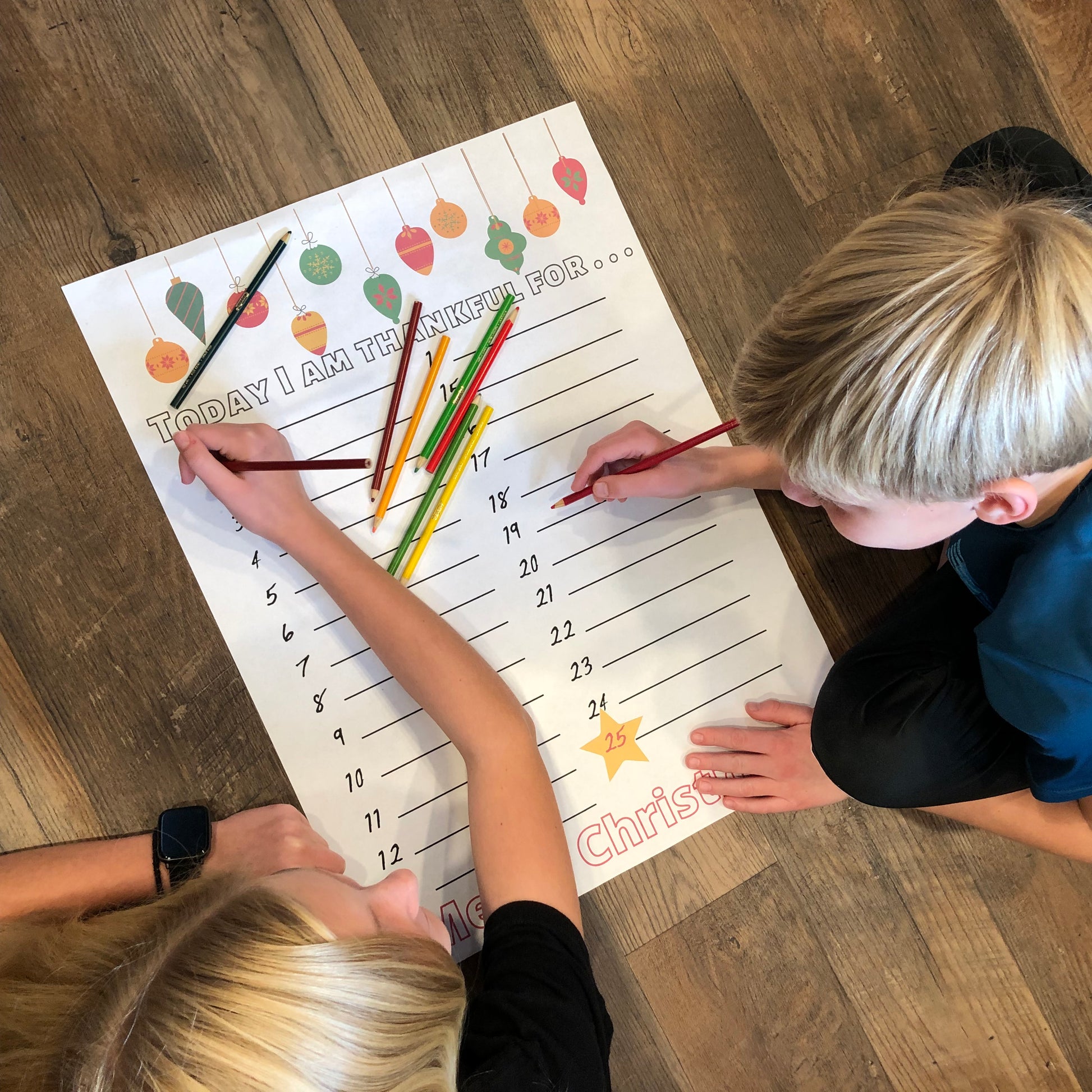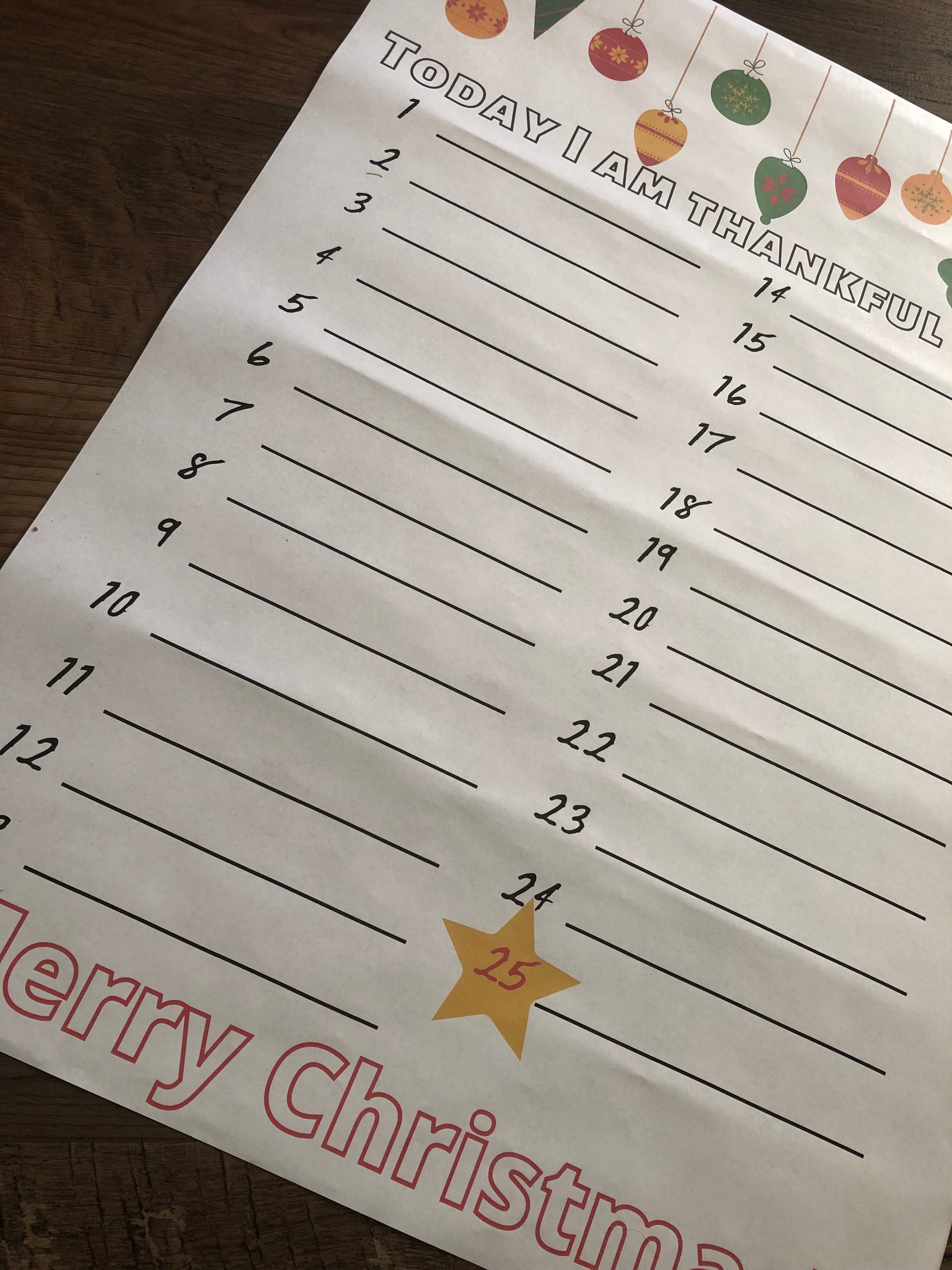 Fill in this easy to use poster together as a family with room for one every day, It will be a memorable family time thinking of all the blessings throughout the season and the perfect way to count down to Christmas with a great visual for kids to watch the day get nearer