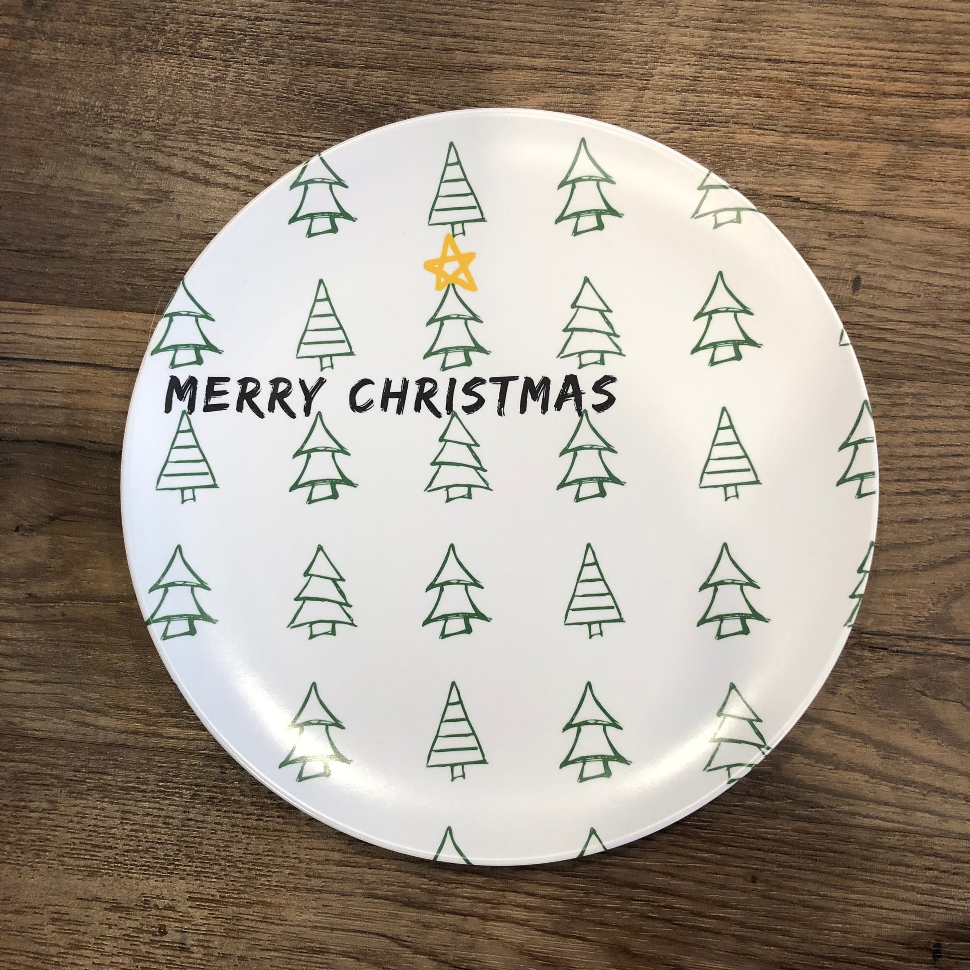 Crafted with love and attention to detail, our Merry Christmas Plate features a joyful design that captures the true spirit of the season. Festive Christmas trees, adorned with a simple single yellow gold star takes center stage on the plate. This plate is like a piece of holiday magic, right at your fingertips. Your culinary creations will not only taste amazing but look amazing on this Merry Christmas Plate.